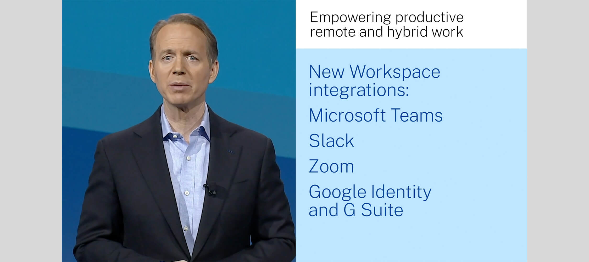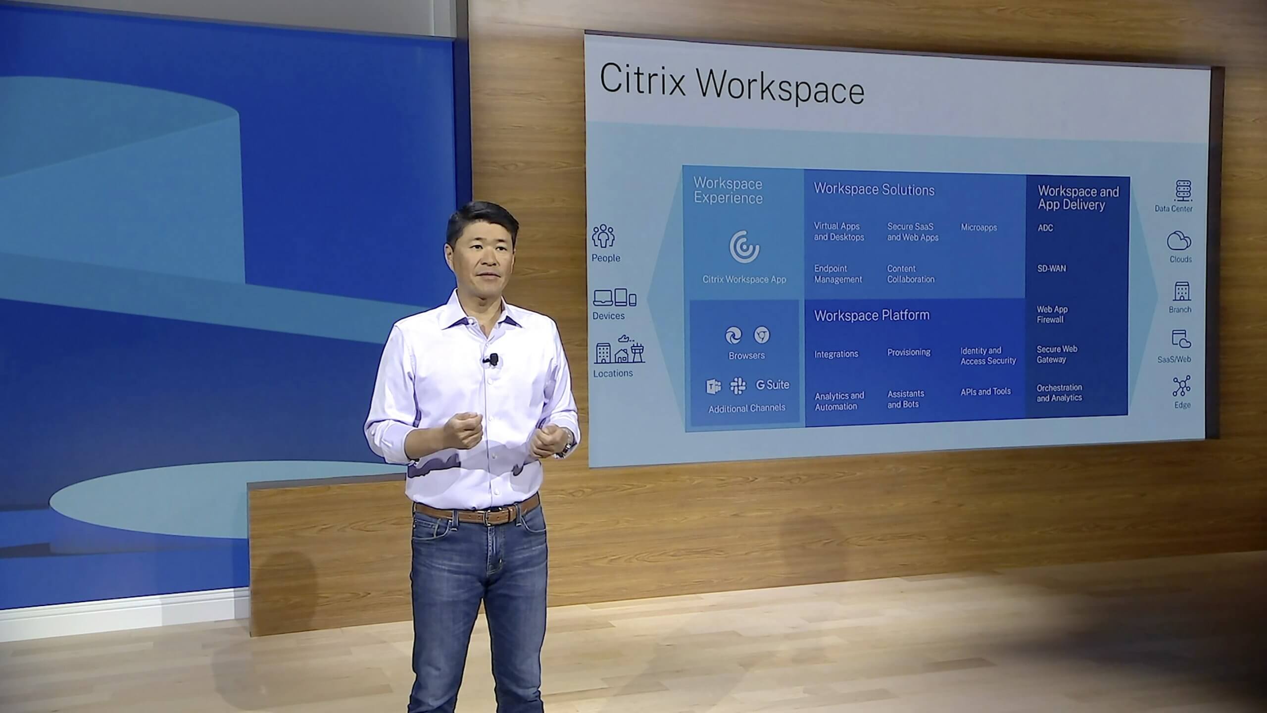 With the agenda set, Willis Collaborative worked with the Comms team and various execs and subject matter experts to script out vision and strategy content, product discussions, and demos. In parallel, we collaborated with Citrix’s main production partner Bellwether on studio scenic and logistics for the shoot days. With scripts finalized, our design team developed presentation graphics that would be used in the studio and taken full screen when needed, and additional on-screen graphics for call-outs.