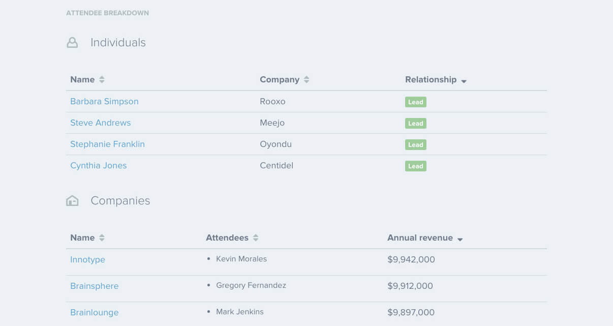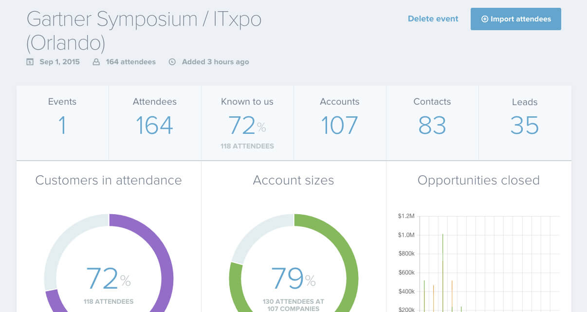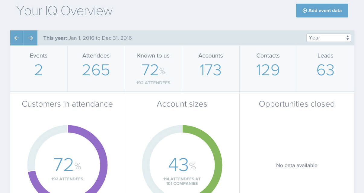 For the events team, Event IQ helps you prioritize and adjust event spend based on which events your customers are attending, helps you segment your customers at events so you know where the most valuable customers are, helps you tie events to revenue and influence sales, and further moves the events role into the realm of sales enablement.